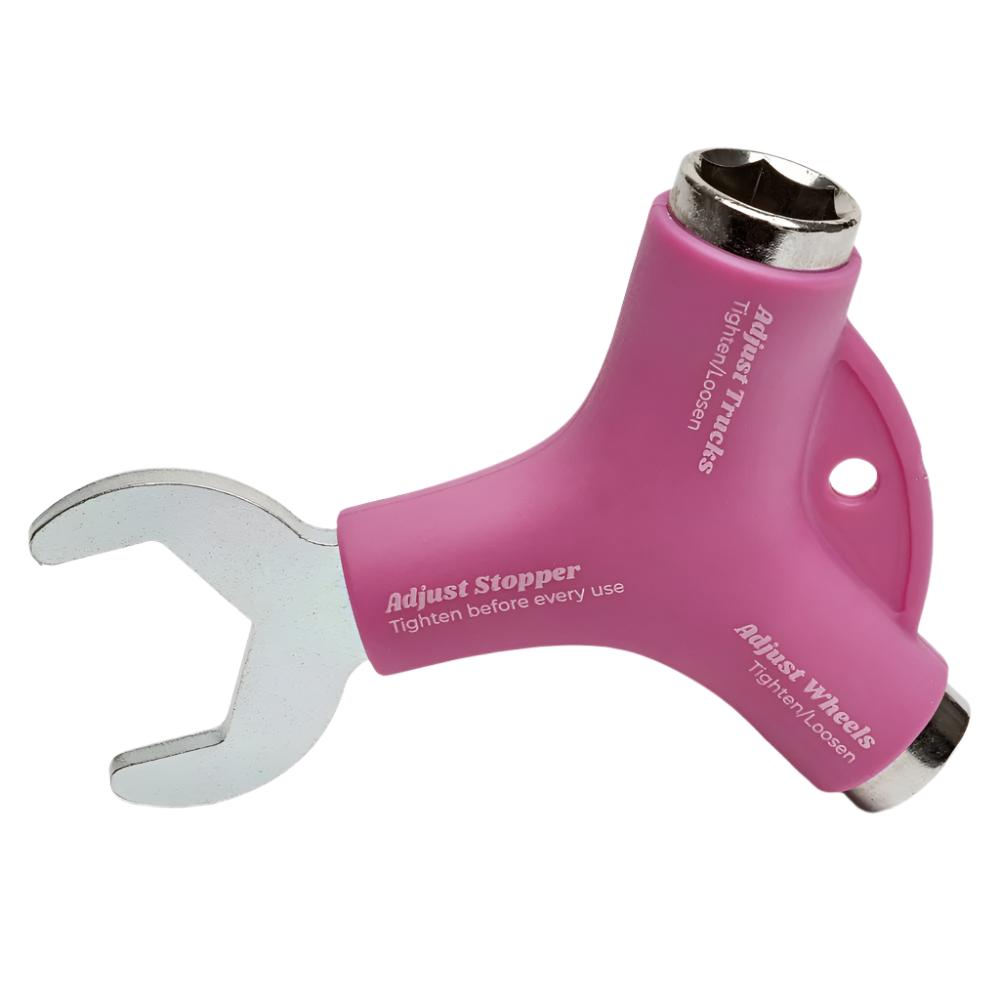This handy tool is perfect for the Samira Roller Skates! This cute tool is compact and easy to carry around, and comes with parts suitable for adjusting the toe stop, wheel nuts and trucks!
