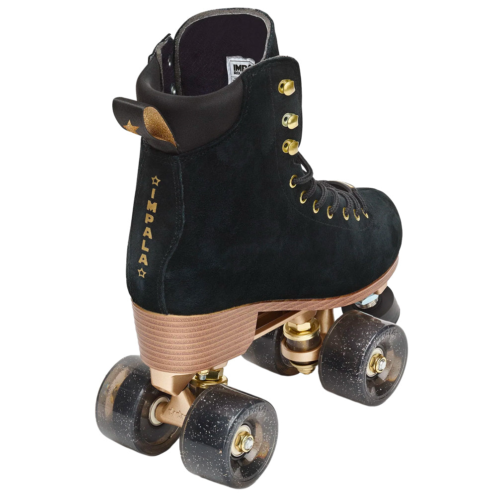 The Impala Samira Black Night Roller Skate is a premium recreational skate made for outdoor cruising, the skating rink, and beginner jam skating. Features Suede Upper Adjustable Toe Stops!
