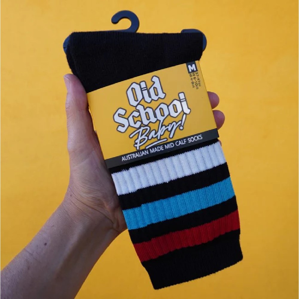 - Features: Mid-high length S, M, or L Designed for action and comfort Small batch socks proudly made in Australia These socks are made of 90% Cotton, 5% Lycra, 5% Nylon - perfect for hard skating sessions!