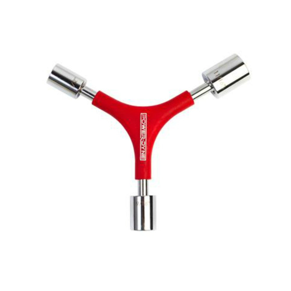 The PowerDyne Y4 Skate Tool is the only tool you need. Features Include; Ergonomic design Non-slip grip 9/16" Removable Socket for standard king pin 1/2" Socket for wheel nut 11/16" Socket for PowerDyne Reactor king pin 5mm T handle Allen wrench for toe stop set screw Strong drop forged construction Durable chrome plating Grippy rubber coating Incorporating 4 tools in one helps you get your repairs and adjustments done with ease.