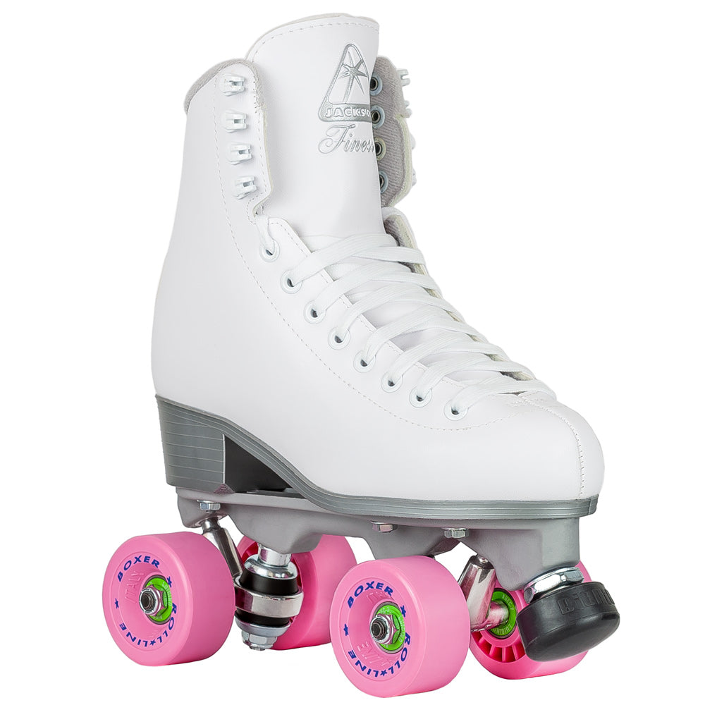 - Features: Boot: Jackson Finesse (Womens) Plate: Viper Zytel Nylon Bearings: Bionic ABEC 7 Wheels: Roll-Line Boxer 57mmx30mm 57D (pink) Sizes: Men's: 5-9 full sizes only Boot Features: Reinforced Vinyl coated uppers Anti-bacterial Nylex lining.