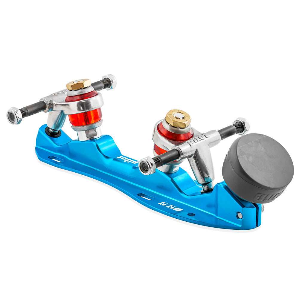 - Features Include; Extruded aircraft aluminium 6061-T6 16 degree double action trucks No hassle micro-click adjustable trucks High rebound urethane bushings Lightweight Bionic rubber Super Stopper Tools included Pilot plates sizes equal the distance between the axles, that is a size 5.5 plate has a distance 5.5" between each axle.